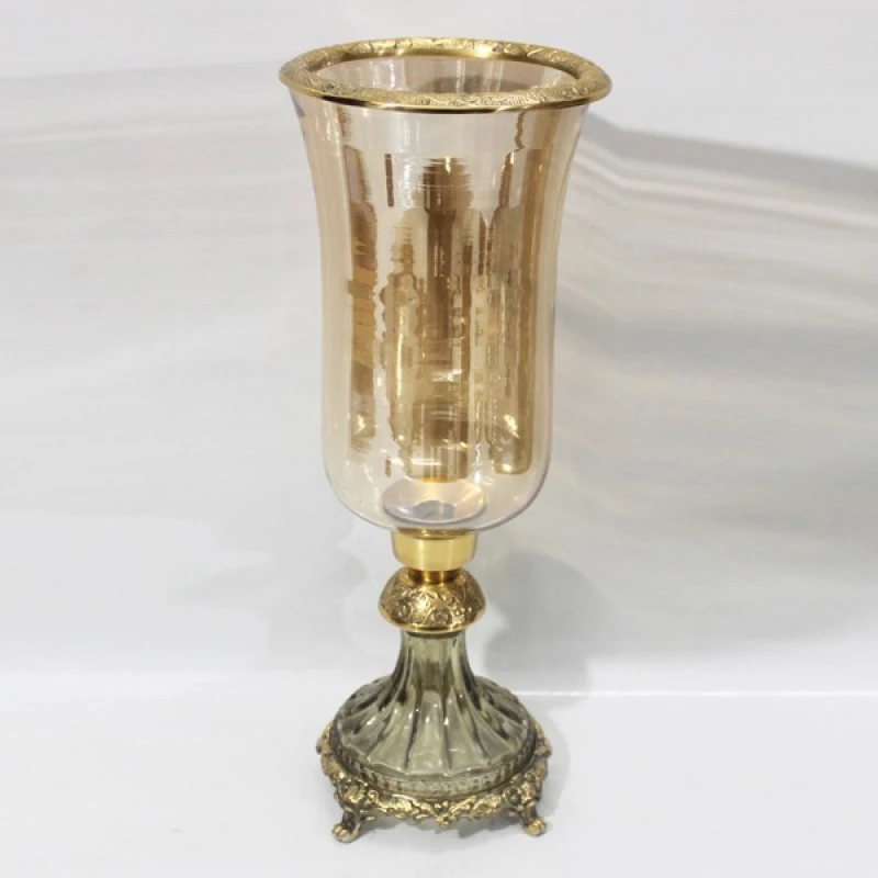 Βάζο γυάλινο μελί με μεταλλικά αντικέ χρυσά τελειώματα από την ESTHETI - Διαστάσεις: 17x38εκ.
