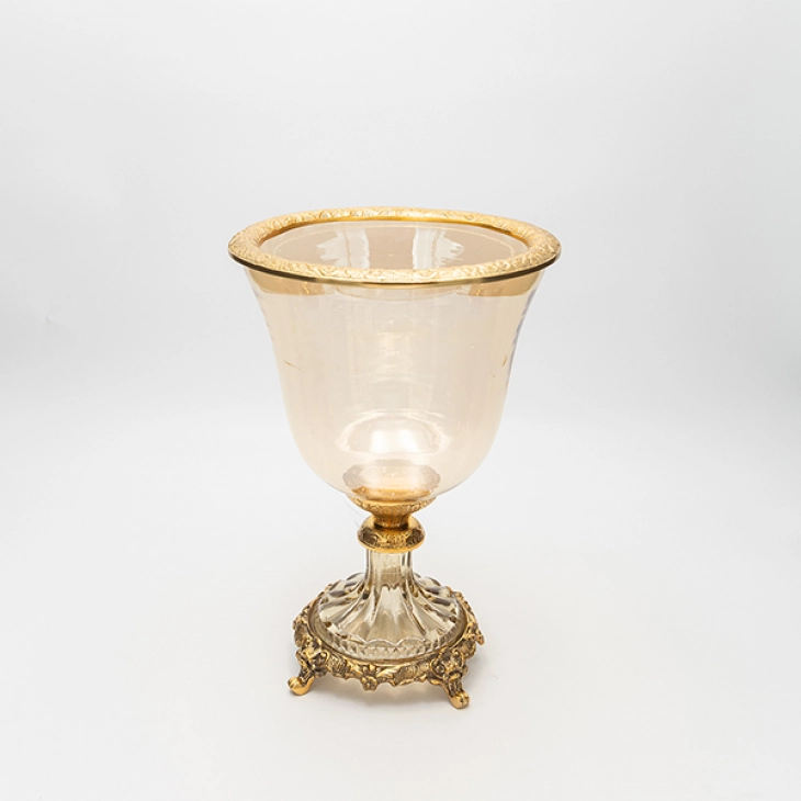 Διακοσμητικό Μπωλ Με Πόδι Γυάλινο-Μεταλλικό Αντικέ Χρυσό-Μελί 19x19x27εκ. ESTHETI 819-00429