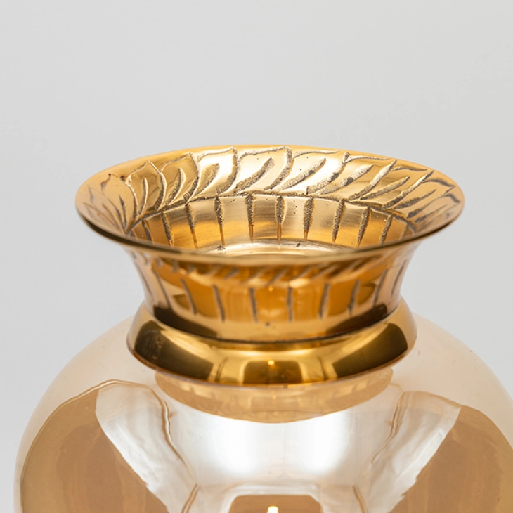 Βάζο Γυάλινο-Μεταλλικό Αντικέ Χρυσό-Μελί 17x33εκ. ESTHETI 819-00433