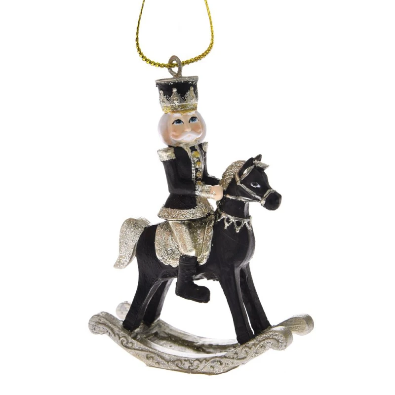 Χριστουγεννιάτικο στολίδι κρεμαστό, καρυοθραύστης πάνω σε άλογο polyresin σε μαύρο χρώμα απο την iliadis - Διαστάσεις: 6,5x3x9,5εκ.- Η ελάχιστη ποσότητα αγοράς για αυτό το προϊόν είναι 6τμχ.