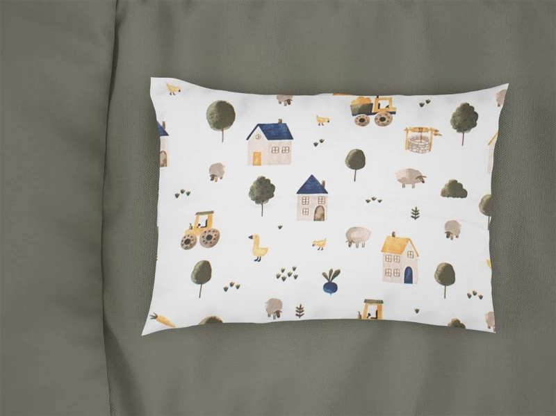 Μαξιλαροθήκη Παιδική Φάκελος Βαμβακερή 50x70εκ. Village 579 White-Green DimCol