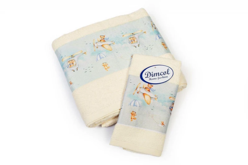 Σετ Πετσέτες 2τμχ Μπεμπέ Βαμβακερές Helicopter 307 Ecru DimCol