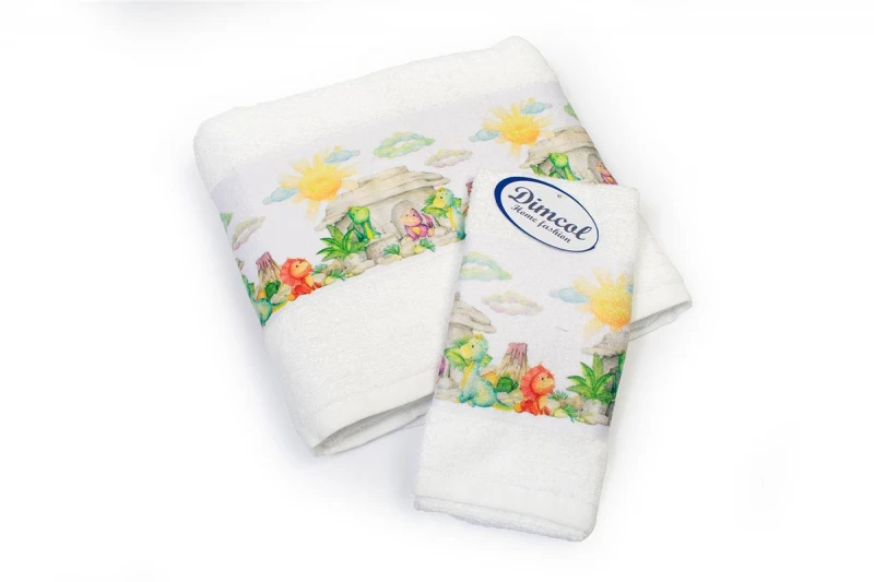 Σετ Πετσέτες 2τμχ Μπεμπέ Βαμβακερές Dinosaurs 311 White DimCol
