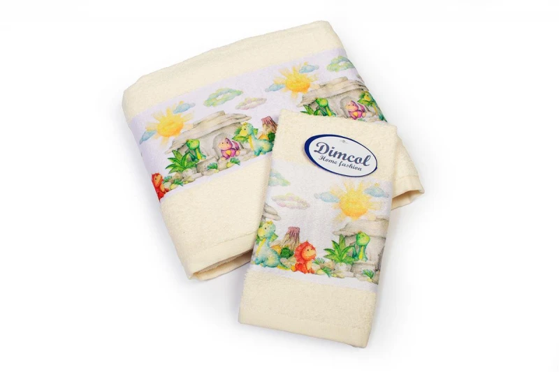 Σετ Πετσέτες 2τμχ Μπεμπέ Βαμβακερές Dinosaurs 312 Ecru DimCol
