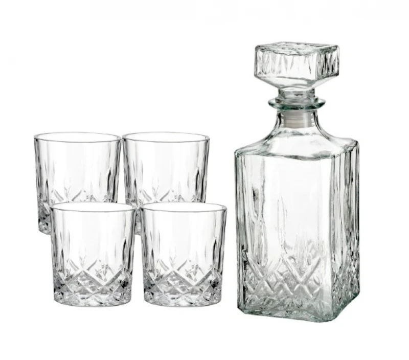 Σετ καράφα με 4 ποτήρια γυάλινα διάφανα από την Homla - Το σετ περιλαμβάνει: 1 καράφα 950ml και 4 ποτήρια 200ml