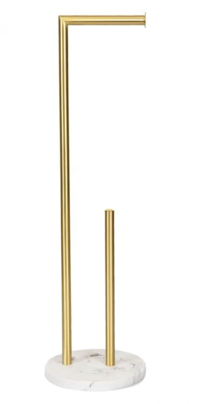 Επιδαπέδια χαρτοθήκη μεταλλική - κεραμική σε λευκό - χρυσό χρώμα της σειράς Dokka από την Homla - Διαστάσεις: 20,5x73,5εκ.