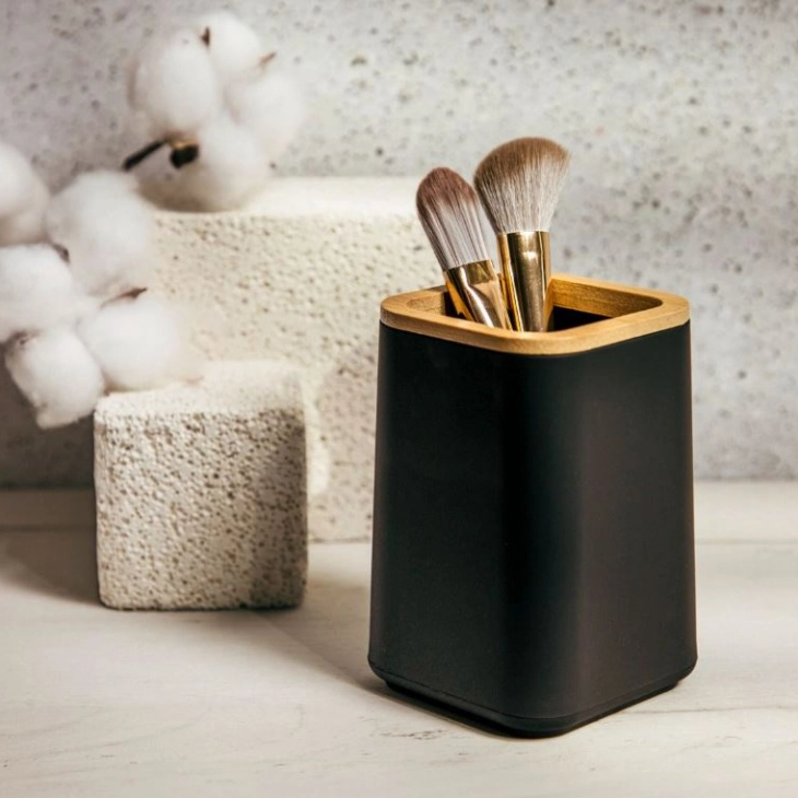 Σετ 2τμχ Ντισπένσερ & Ποτηροθήκη Πλαστικό-Bamboo Μαύρο-Natural Setisa 7,5x17,5εκ.-7x11,5εκ. Homla 237913-237908