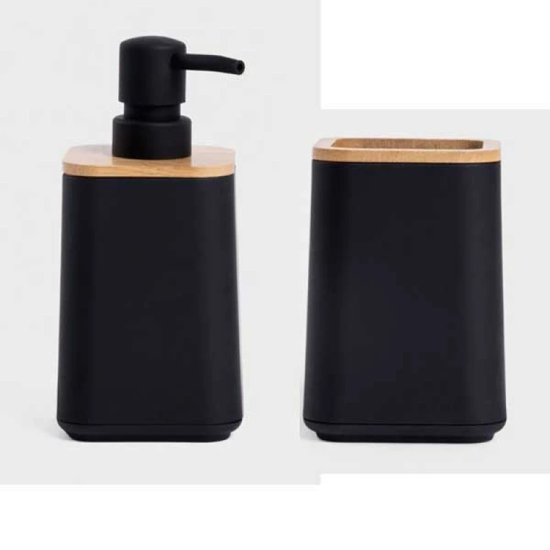 Σετ 2τμχ ντισπένσερ και ποτηροθήκη πλαστική - bamboo σε μαύρο - natural χρώμα της σειράς Setisa από την Homla - Το σετ περιλαμβάνει: 1 ντισπένσερ 7,5x17,5εκ. και 1 ποτηροθήκη 7x11,5εκ.