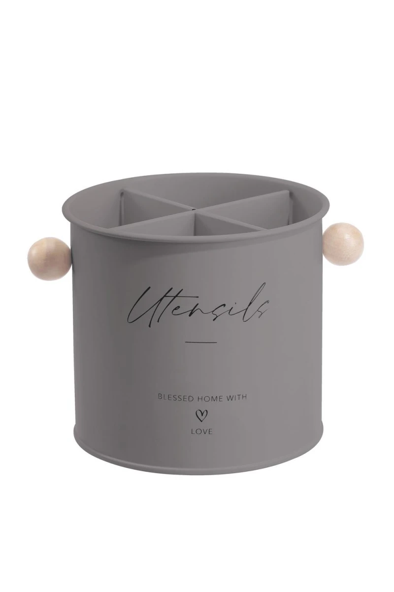 Κουταλοθήκη επιτραπέζια μεταλλική σε γκρι χρώμα με 4 χωρίσματα από την Oriana Ferrelli - Διαστάσεις: Φ13,5x13εκ.