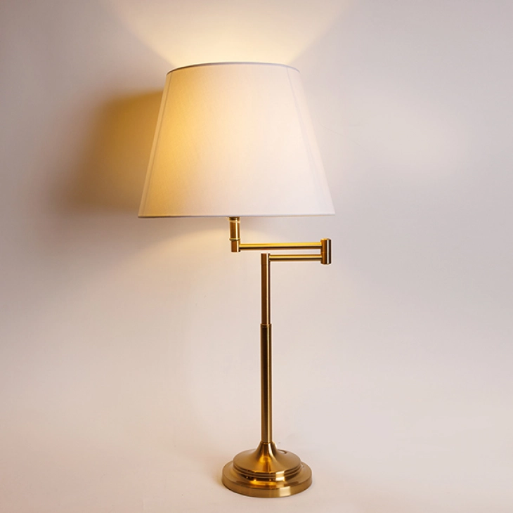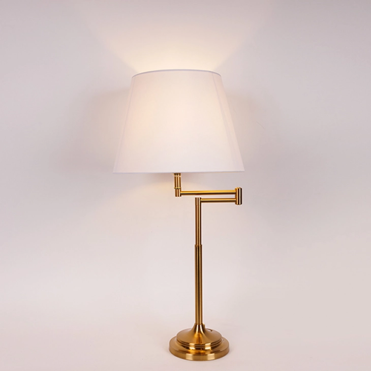 Φωτιστικό επιτραπέζιο με μεταλλική χρυσή βάση και καπέλο σε λευκό χρώμα από την ESTHETI - Διαστάσεις: 33x70εκ.