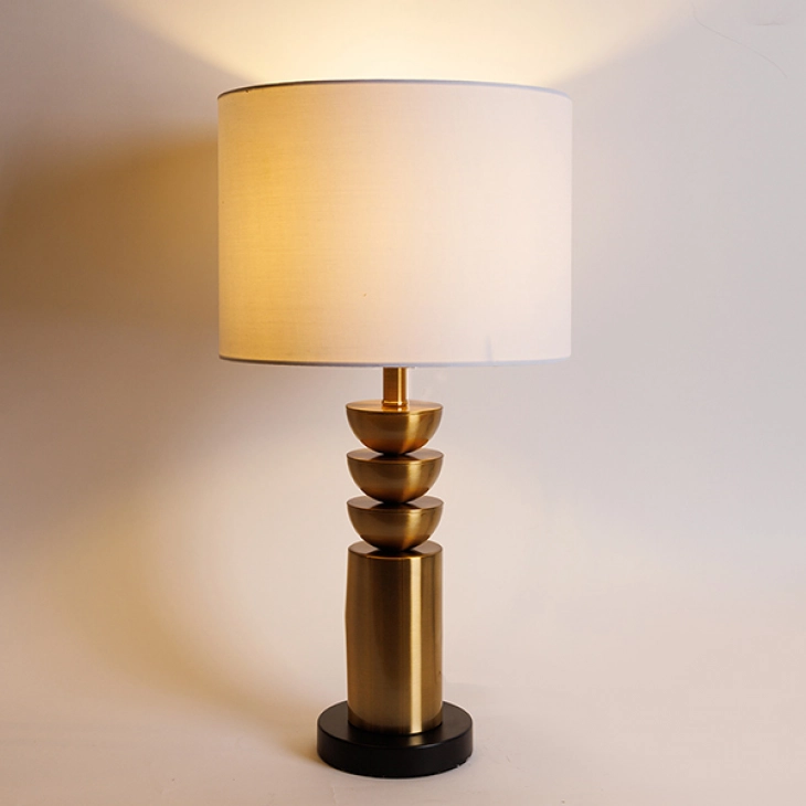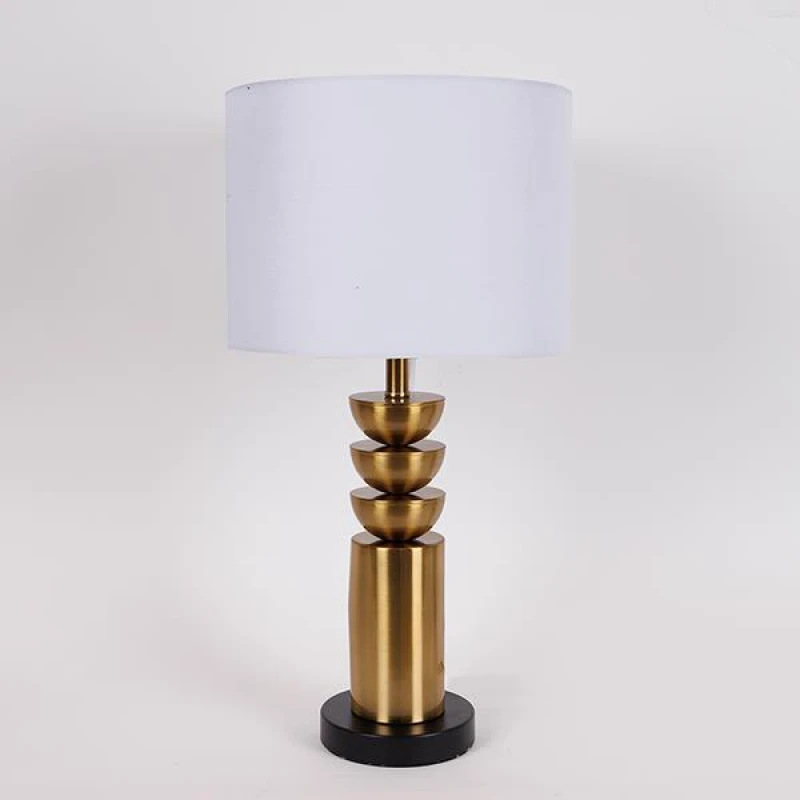 Φωτιστικό επιτραπέζιο με μεταλλική χρυσή - μαύρη βάση και καπέλο σε λευκό χρώμα από την ESTHETI - Διαστάσεις: 28x54εκ.