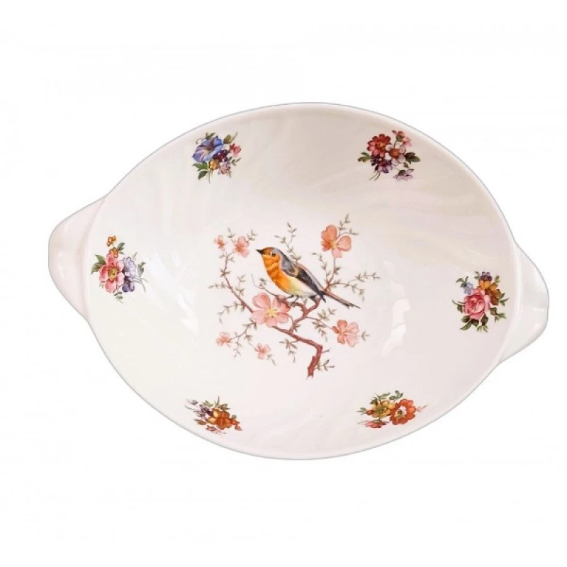 Διακοσμητικό μπωλ πορσελάνης ανάγλυφο, οβάλ με σχέδιο λουλούδια και πουλάκια από την WM Collection - Διαστάσεις: 23εκ.