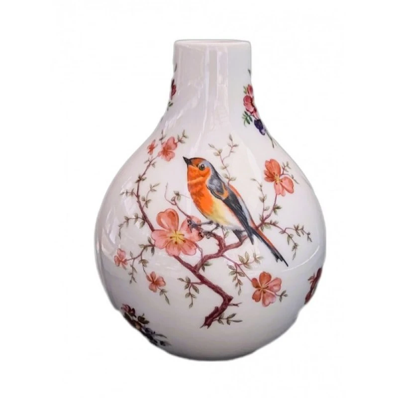 Βάζο πορσελάνης με σχέδιο λουλούδια και πουλάκια από την WM Collection - Διαστάσεις: 11x14εκ.
