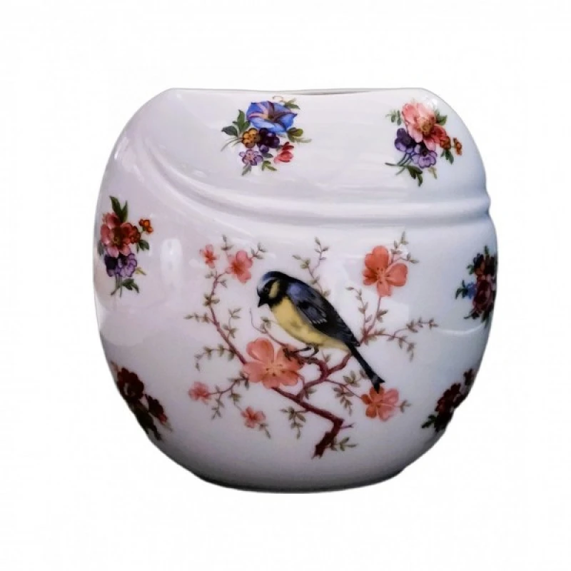 Βάζο πορσελάνης με σχέδιο λουλούδια και πουλάκια από την WM Collection - Διαστάσεις: 15x16εκ.