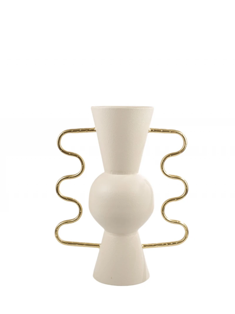 Βάζο μεταλλικό σε μπεζ χρώμα με χρυσά χερούλια από την Zen Collection - Διαστάσεις: 30x15x40εκ.