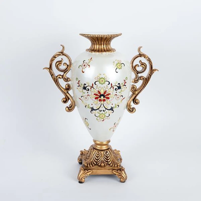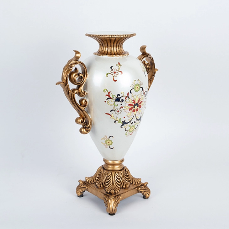 Βάζο Πορσελάνης-Polyresin Λευκό-Χρυσό 30x15x45εκ. ESTHETI 752-21011