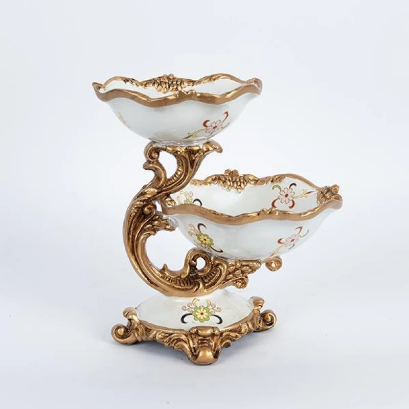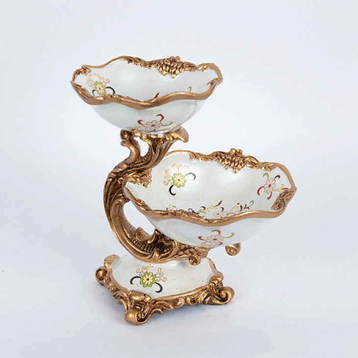 Διακοσμητικό Μπωλ 2 Θέσεων Πορσελάνης-Polyresin Λευκό-Χρυσό Με Λουλούδια 24x19x26εκ. ESTHETI 752-21012