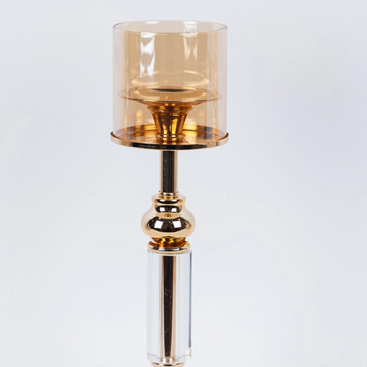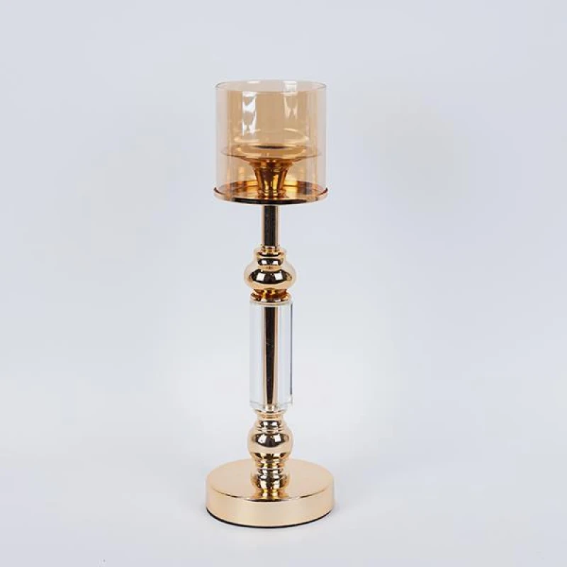 Κηροπήγιο με μεταλλική βάση σε χρυσό χρώμα και μελί γυαλί από την ESTHETI - Διαστάσεις: 12x44εκ.