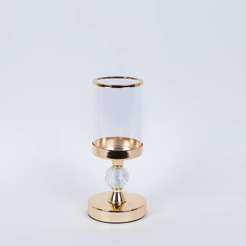 Κηροπήγιο με μεταλλική βάση σε χρυσό χρώμα και διάφανο γυαλί από την ESTHETI - Διαστάσεις: 12x27.5εκ.