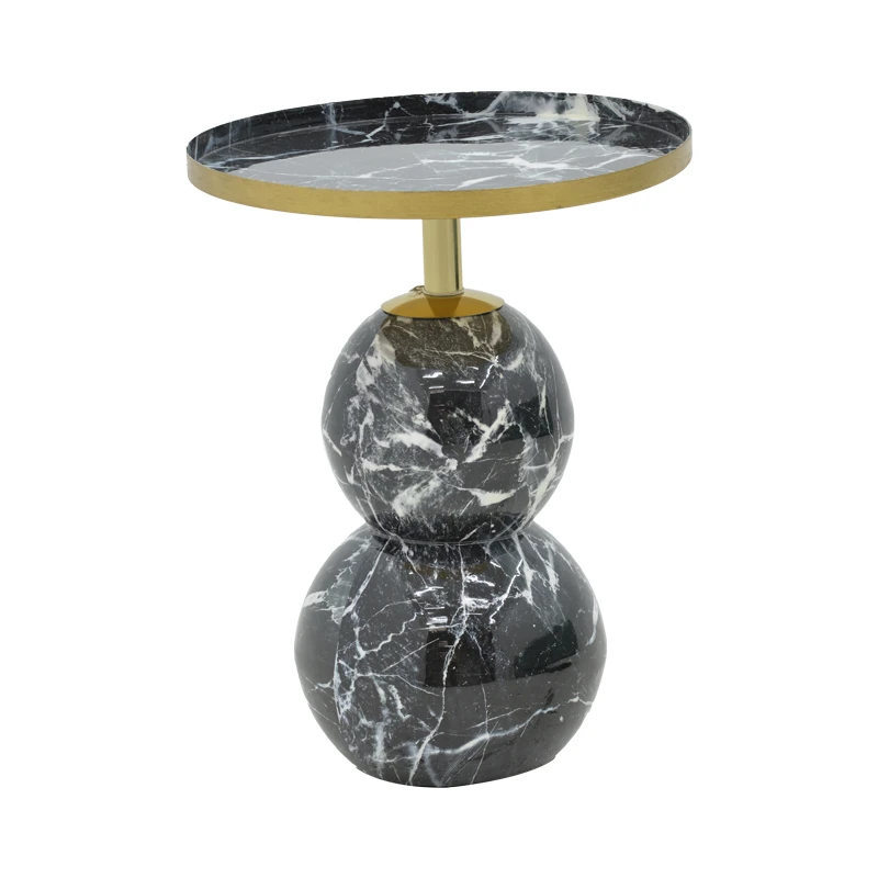 Βοηθητικό τραπέζι Dearest Inart μαυρο μαρμάρου-χρυσό μέταλλο Φ41x57εκ