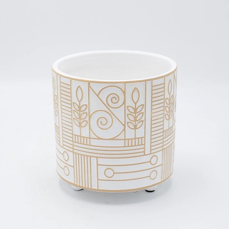 Κασπώ κεραμικό σε λευκό χρώμα με μπεζ σχέδια από την ESTHETI - Διαστάσεις: 17x16,5εκ. - Η ελάχιστη ποσότητα αγοράς για αυτό το προϊόν είναι 3τμχ.