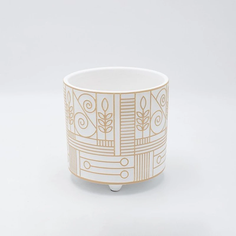 Κασπώ κεραμικό σε λευκό χρώμα με μπεζ σχέδια από την ESTHETI - Διαστάσεις: 13,5x13,5εκ. - Η ελάχιστη ποσότητα αγοράς για αυτό το προϊόν είναι 5τμχ.