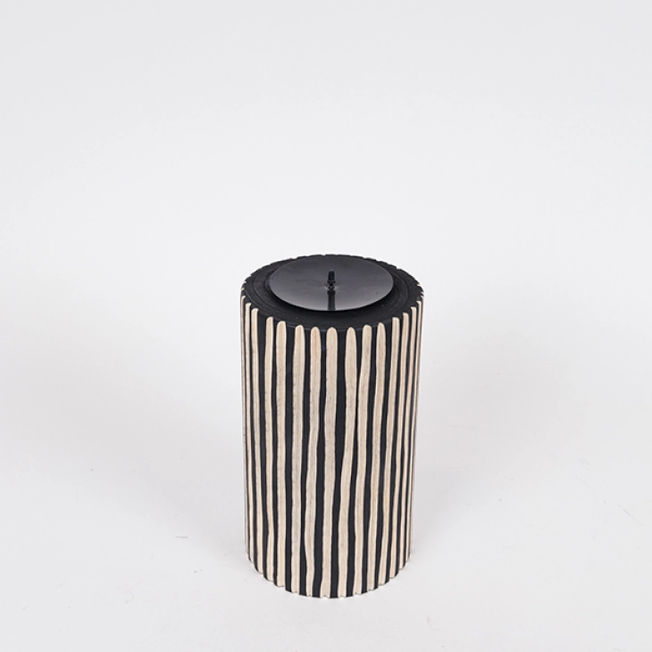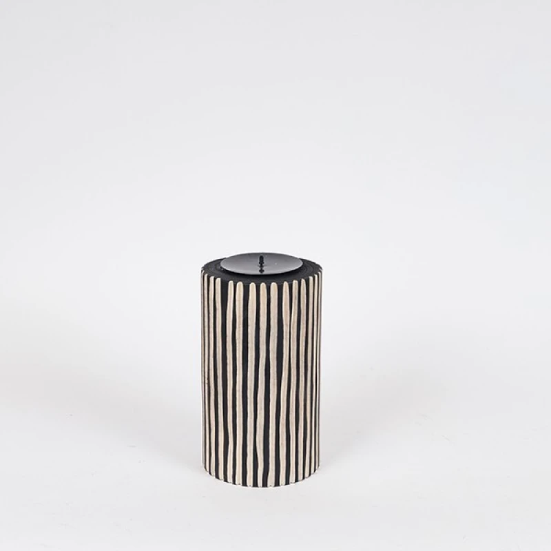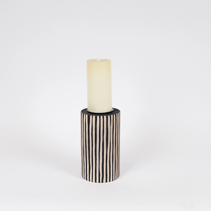 Κηροπήγιο ξύλινο σε μαύρο - φυσικό χρώμα από την ESTHETI - Διαστάσεις: 12x25εκ.