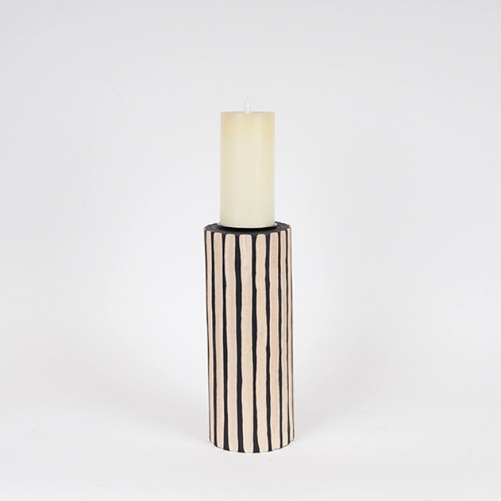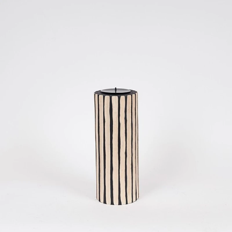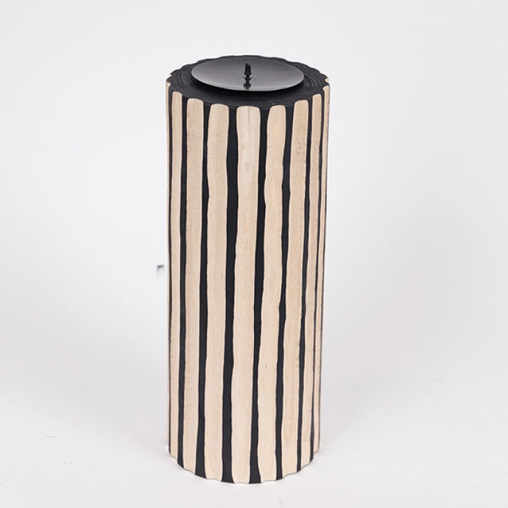 Κηροπήγιο ξύλινο σε μαύρο - φυσικό χρώμα από την ESTHETI - Διαστάσεις: 12x34εκ.