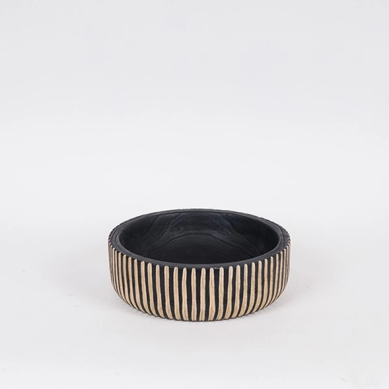 Διακοσμητική πιατέλα ξύλινη σε μαύρο - φυσικό χρώμα από την ESTHETI - Διαστάσεις: 25x25x8εκ.