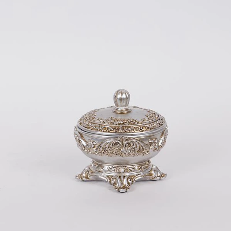 Διακοσμητικό κουτάκι με καπάκι polyresin σε ασημί χρώμα από την ESTHETI - Διαστάσεις: 11,5x10,2εκ.