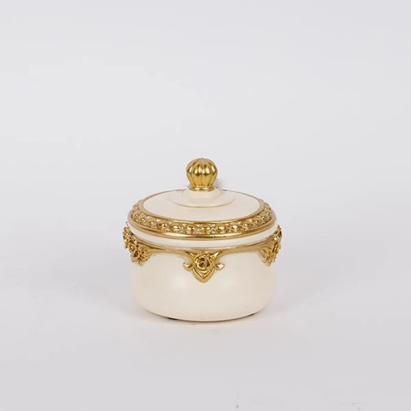 Διακοσμητικό Κουτάκι Με Καπάκι Polyresin Λευκό-Χρυσό 9,5x10,2εκ. ESTHETI 752-28618