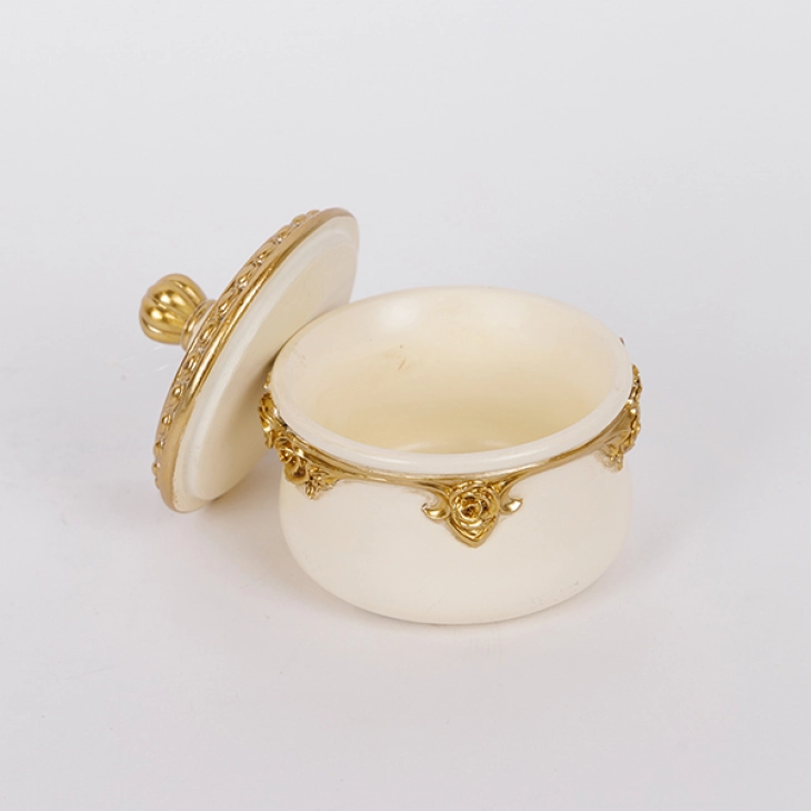 Διακοσμητικό κουτάκι με καπάκι polyresin σε λευκό - χρυσό χρώμα από την ESTHETI - Διαστάσεις: 9,5x10,2εκ.