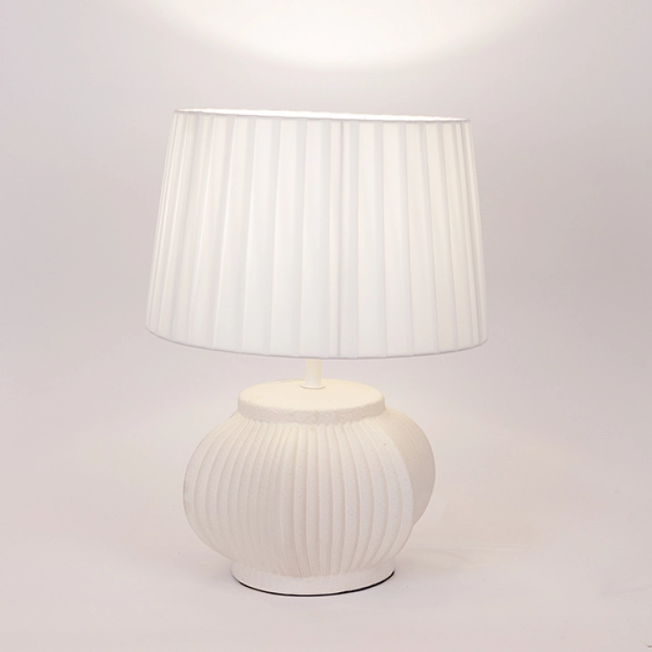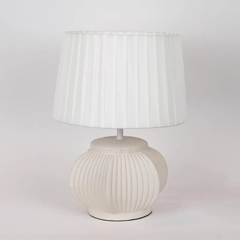 Φωτιστικό επιτραπέζιο με κεραμική βάση και υφασμάτινο λευκό καπέλο από την ESTHETI - Διαστάσεις: 28x24x43εκ.