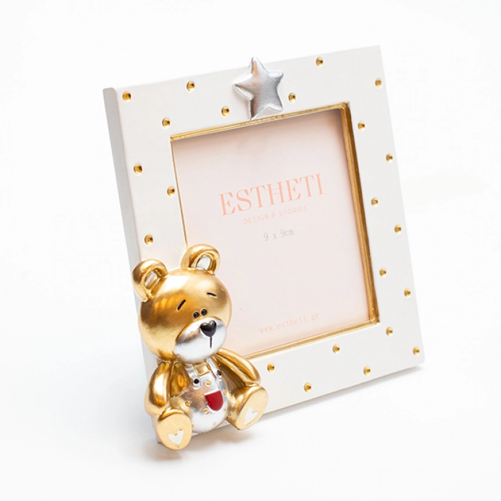 Κορνίζα Παιδική Polyresin Αρκουδάκι Λευκή-Χρυσή 13,5x2,8x12,7εκ. ESTHETI 815-00045