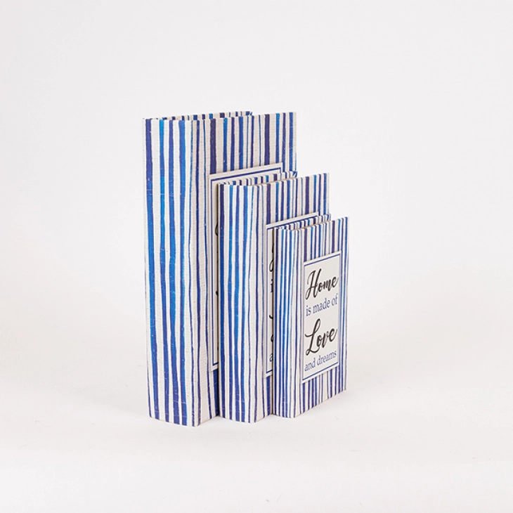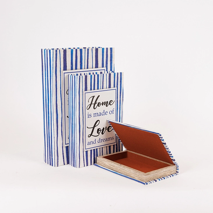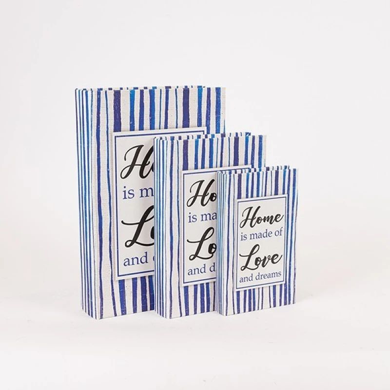 Διακοσμητικό Κουτί Βιβλίο Σετ 3τμχ Ξύλινο Λευκό-Μπλε 22x7x33εκ. ESTHETI 819-00280