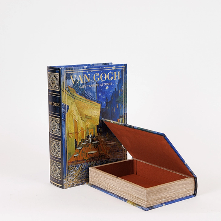 Διακοσμητικά κουτιά βιβλία σετ 2τμχ ξύλινα με σχέδιο Van Gogh σε μπλε - κίτρινο χρώμα από την ESTHETI - Διαστάσεις: 21x7x30εκ.