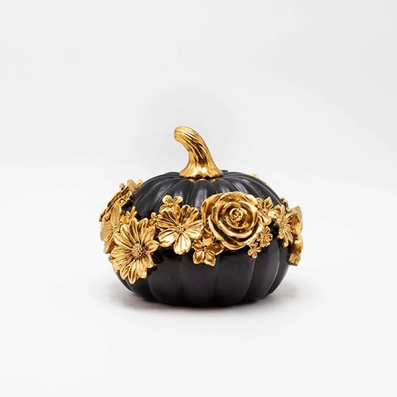 Διακοσμητική κολοκύθα polyresin με σχέδιο λουλούδια σε χρυσό - μαύρο χρώμα από την ESTHETI - Διαστάσεις: 13,3x13,5x10,7εκ.