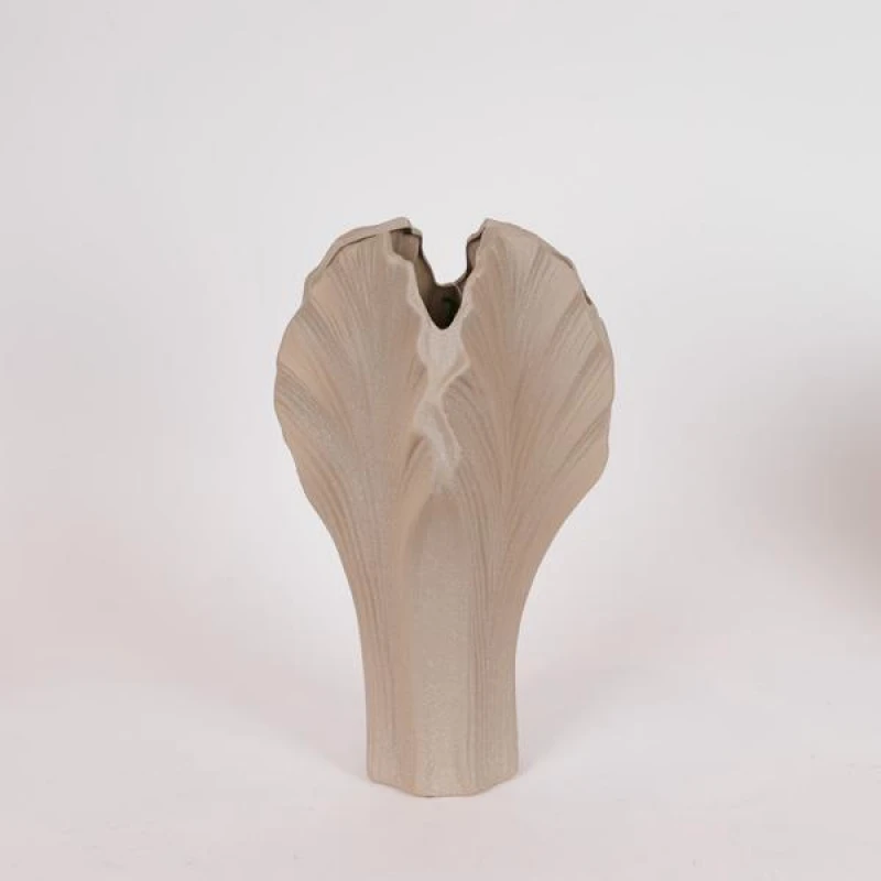 Βάζο κεραμικό σε γκρι - μπεζ χρώμα και σχήμα φύλλου από την ESTHETI - Διαστάσεις: 18x18x40εκ.