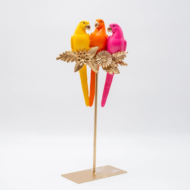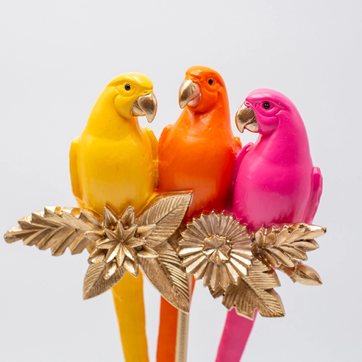 Επιτραπέζιο διακοσμητικό polyresin σε χρυσή βάση με τρία παπαγαλάκια πολύχρωμα από την ESTHETI - Διαστάσεις: 16x7,5x36εκ.