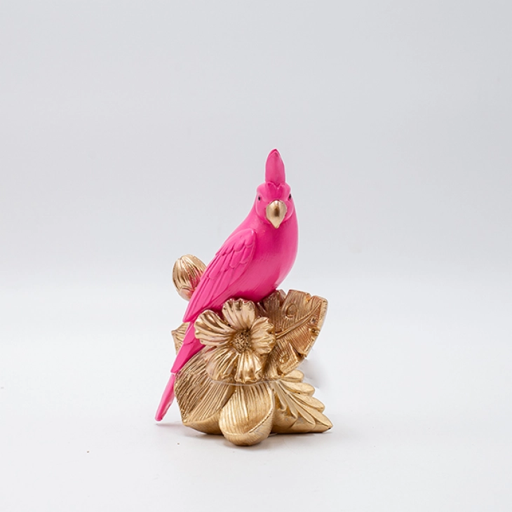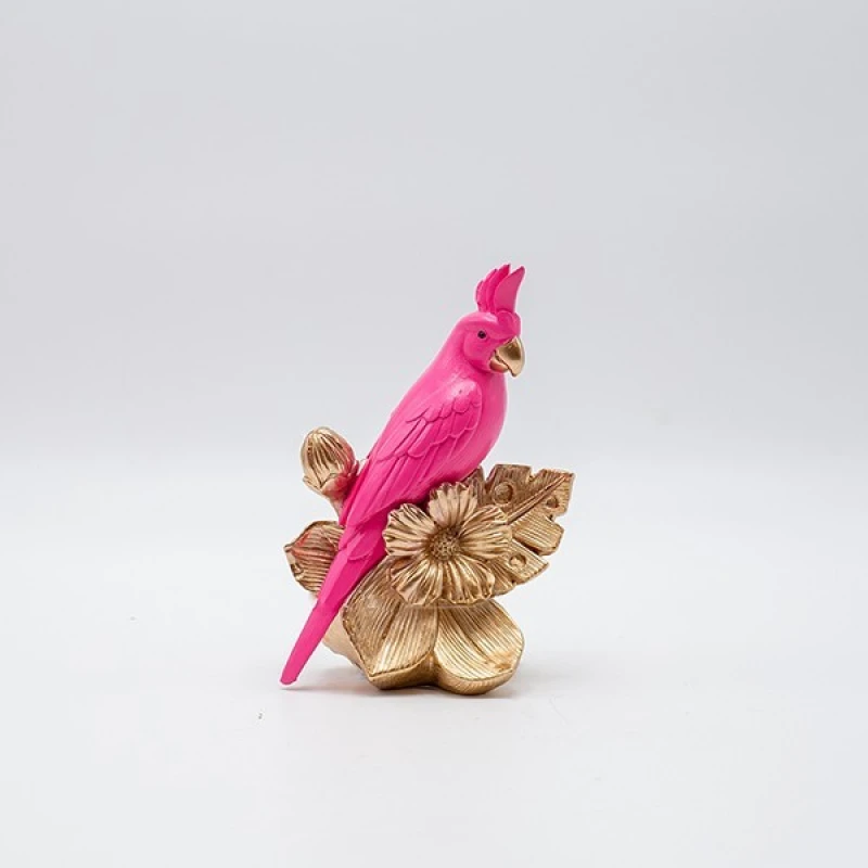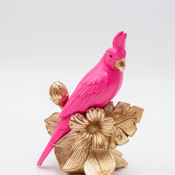 Διακοσμητικός Επιτραπέζιος Παπαγάλος Polyresin Ροζ-Χρυσός 10,5x7x15εκ. ESTHETI 819-00819