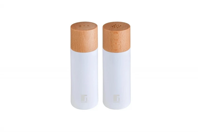 Σετ 2τμχ αλατοπίπερα ξύλινα-καουτσούκ σε λευκό ματ-natural χρώμα από την Bergner - Διαστάσεις: 5x5x15,3εκ.
