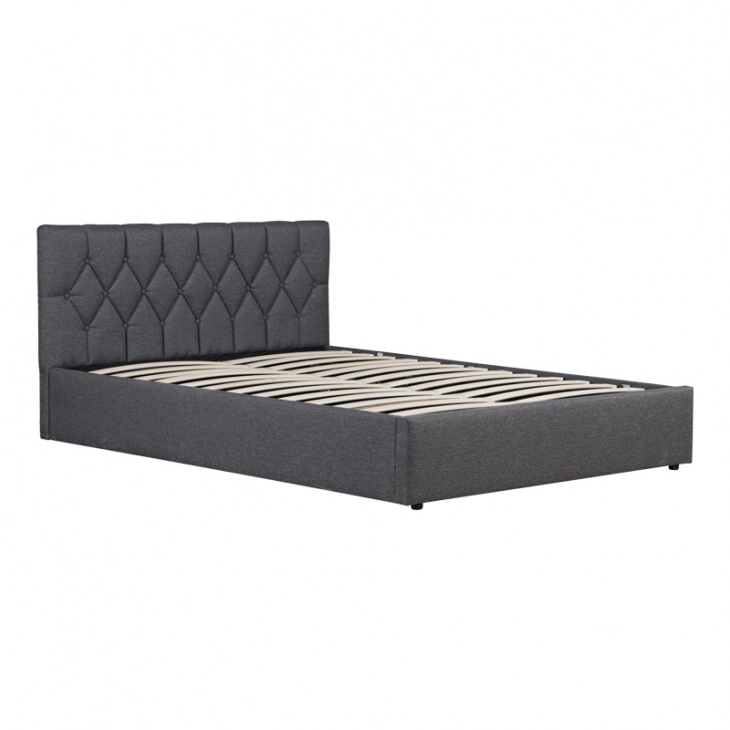 Κρεβάτι διπλό Kamaho I pakoworld ύφασμα ανθρακί με αποθηκευτικό χώρο 160x200εκ
