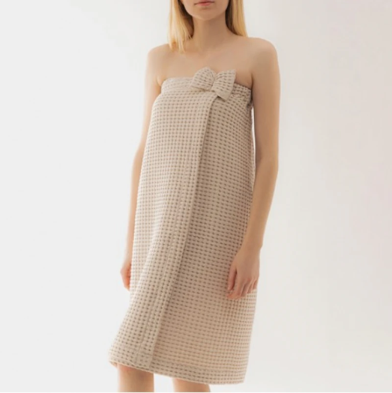 Η πετσέτα Vaffel αποτελεί μια εξαιρετική εναλλακτική λύση σε σχέση με μια κανονική πετσέτα μπάνιου. Έχει σχεδιαστεί με τέτοιο τρόπο ώστε αφού στεγνώσει το δέρμα σας, να μπορείτε να τυλιχτείτε σε αυτήν χωρίς να ανησυχείτε ότι θα γλιστρήσει από το σώμα σας μετά από λίγο. Η πετσέτα στερεώνεται μπροστά με βέλκρο, το οποίο είναι ραμμένο κατά μήκος της άνω λωρίδας, ενώ στο πίσω μέρος διαθέτει μια ελαστική ταινία που τεντώνεται και συστέλλεται με την κίνηση του σώματος. Αυτές οι λύσεις κάνουν την πετσέτα να συγκρατείται καλά στο σώμα, και το μέγεθός της είναι καθολικό.
