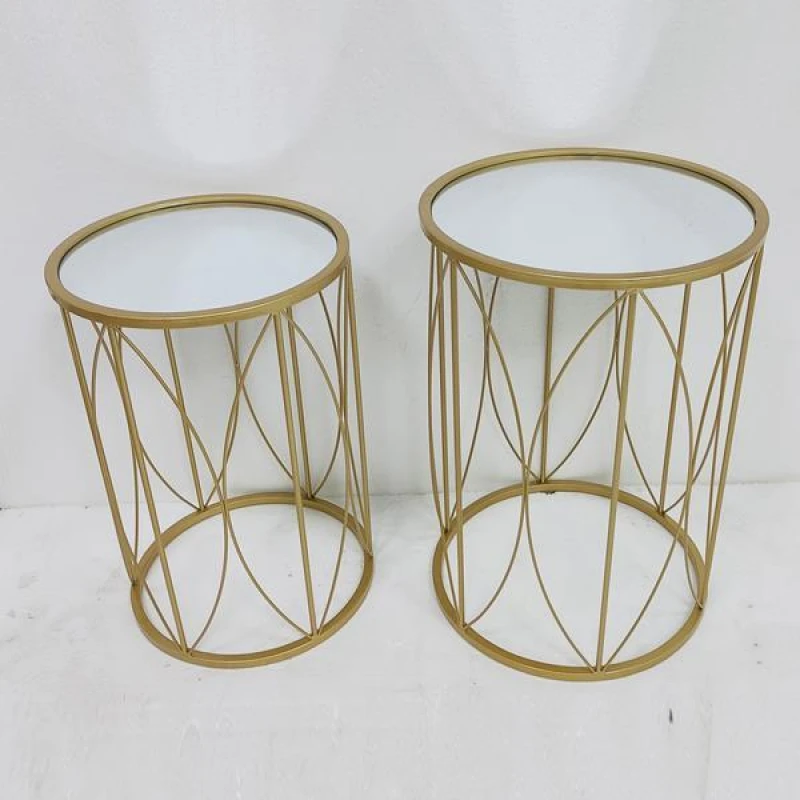 Σετ 2τμχ βοηθητικά τραπεζάκια μεταλλικά με γυαλί σε χρυσό χρώμα από την ESTHETI - Διαστάσεις: 38x55,5εκ.-33x50,5εκ.