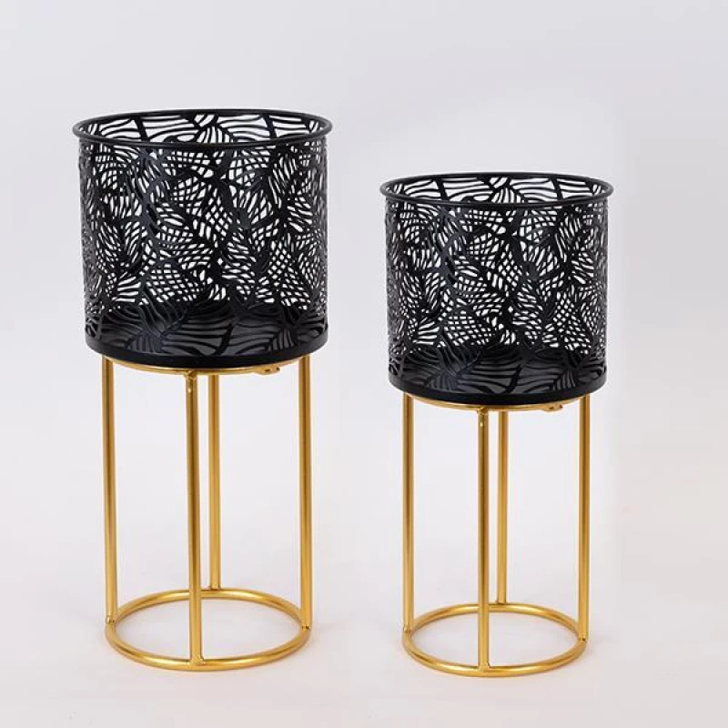 Κασπώ σετ 2τμχ μεταλλικό σε μαύρο - χρυσό χρώμα από την ESTHETI - Διαστάσεις: 20x45εκ./18x35εκ.