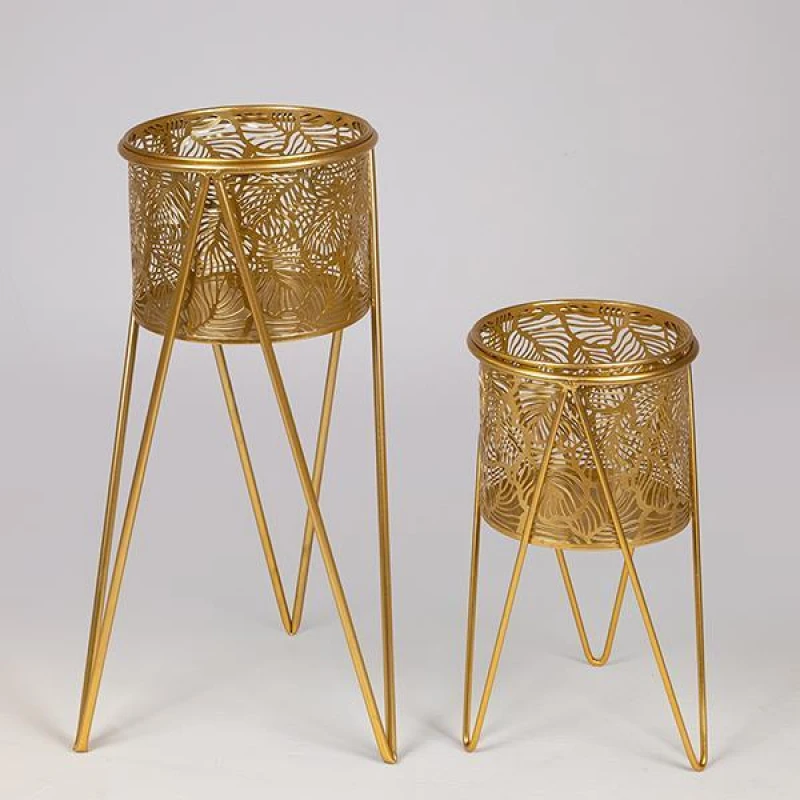Κασπώ σετ 2τμχ μεταλλικό σε χρυσό χρώμα από την ESTHETI - Διαστάσεις: 27x50εκ./21x33εκ.