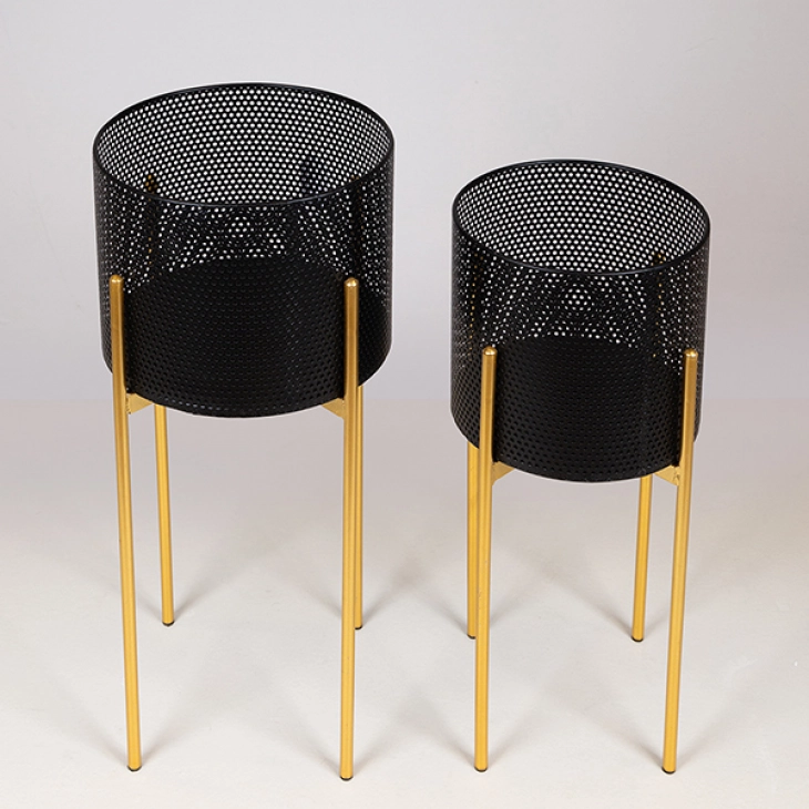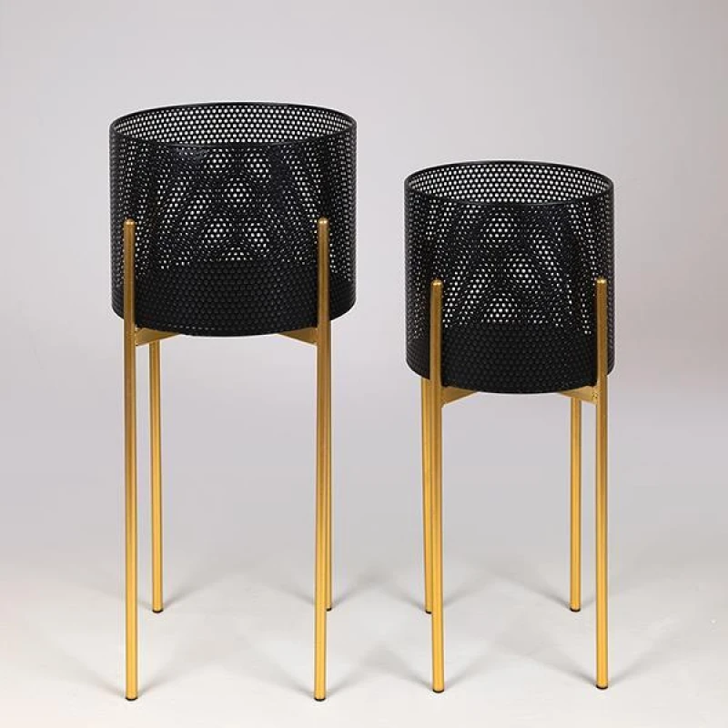 Κασπώ σετ 2τμχ μεταλλικό σε μαύρο - χρυσό χρώμα από την ESTHETI - Διαστάσεις: 29x60εκ./25x54εκ.