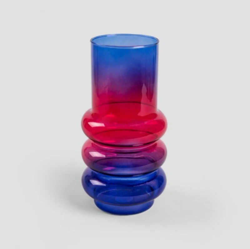 Βάζο γυάλινο σε κόκκινο-μπλε ombre χρώμα από την Homla - Διαστάσεις: 11x26εκ.