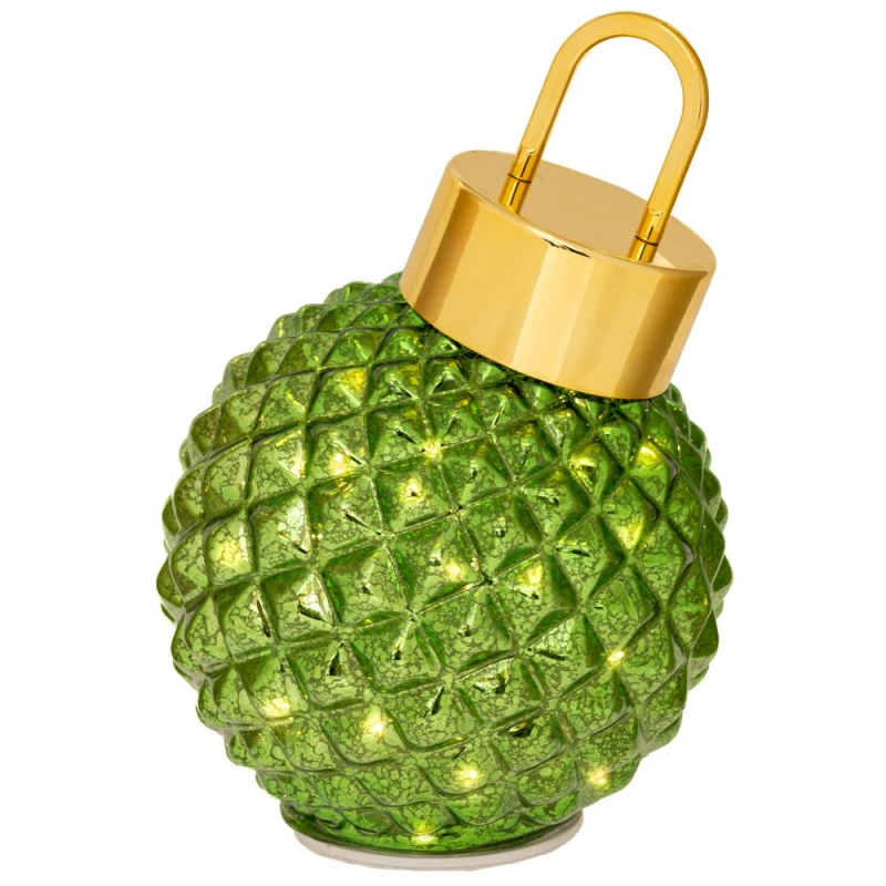 Χριστουγεννιάτικη διακοσμητική μπάλα περιστρεφόμενη γυάλινη σε πράσινο χρώμα με φως led μπαταρίας από την iliadis - Διαστάσεις: Φ18εκ.