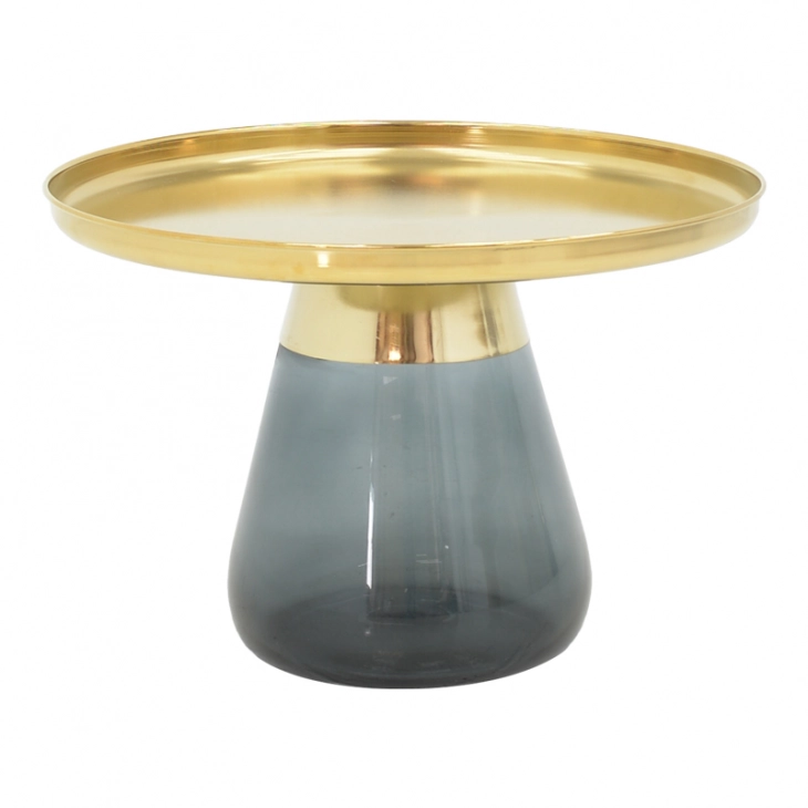 Τραπέζια σαλονιού Kunlo Inart σετ 2τεμ χρυσό χρώμιο-μαύρο γυαλί